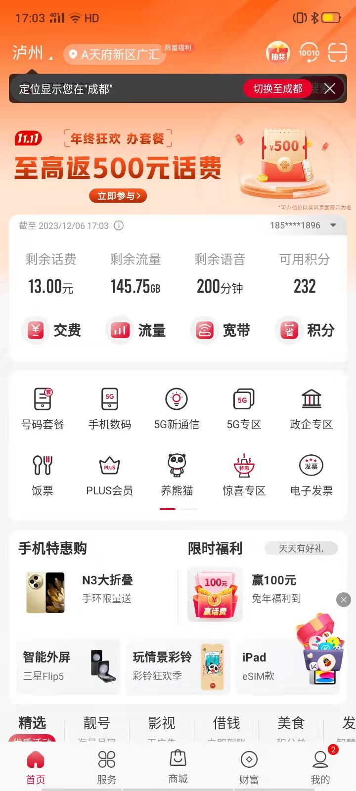 下载安装中国联通手机营业厅,安装完成后点击中国联通手机营业厅,进入营业厅首页。登录后即可看到实时话费余额、流量余额等信息。
