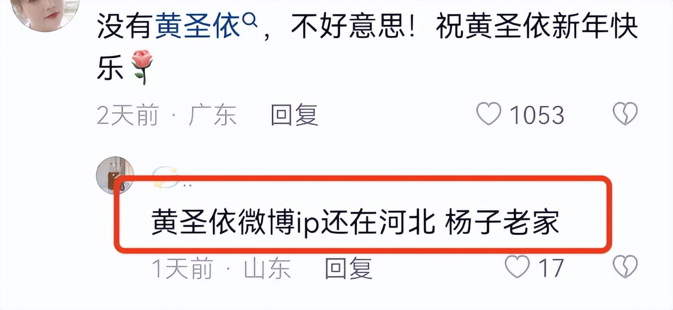 不过有网友发现其实黄圣依也回河北了,因为她的微博IP显示的是河北,也就是杨子老家,这个豪宅的所在地。