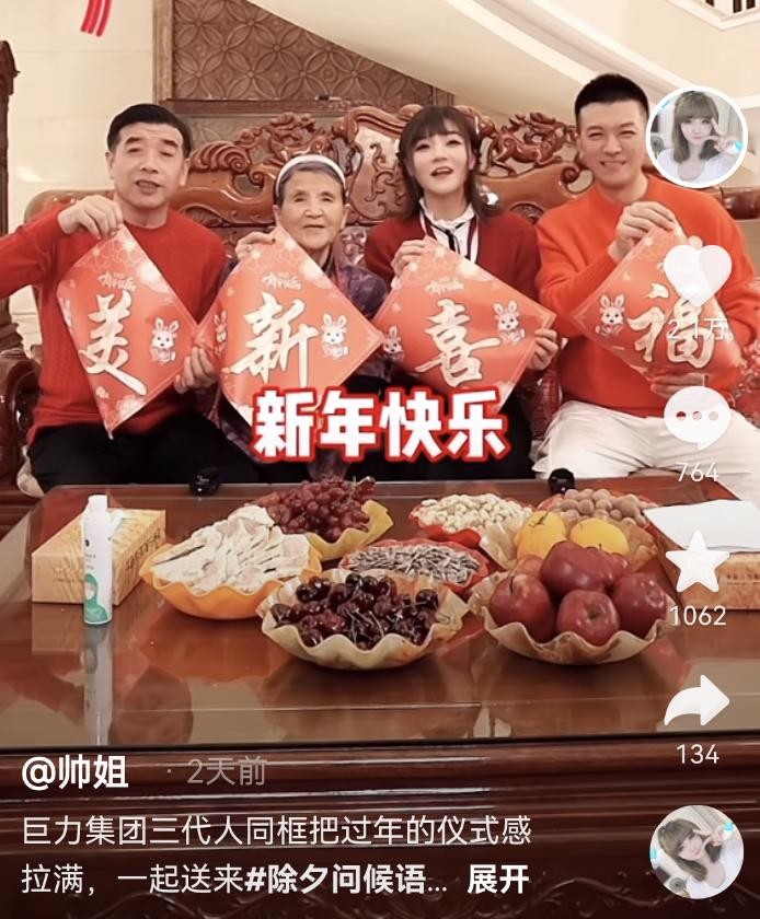 在大年初一这天,杨海润也分享了所有家人齐聚一堂的画面,豪宅很大,在座的家人朋友也有很多,现场十分热闹。