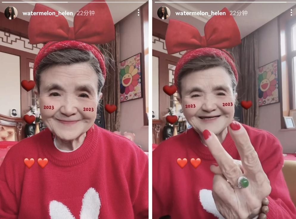 同时她还分享了奶奶的照片,也就是杨子的母亲。老太太今年已经快90岁了,前不久还战胜了新冠,精气神看起来很不错。她穿着红色毛衣,戴着红色发箍十分喜庆。