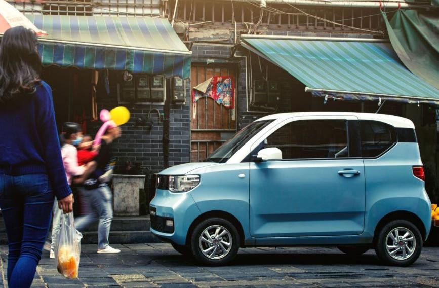 宏光MINI EV长宽高分别为2917/1493/1621mm,轴距为1940mm,四四方方得像一个盒子的外观造型,看上去十分精简但又不失Q萌。该车为双门四座两厢结构,小巧的车身停车非常方便,可以一位停两车,不用为停不下车而烦恼,也不用担心离前后车太近的问题。