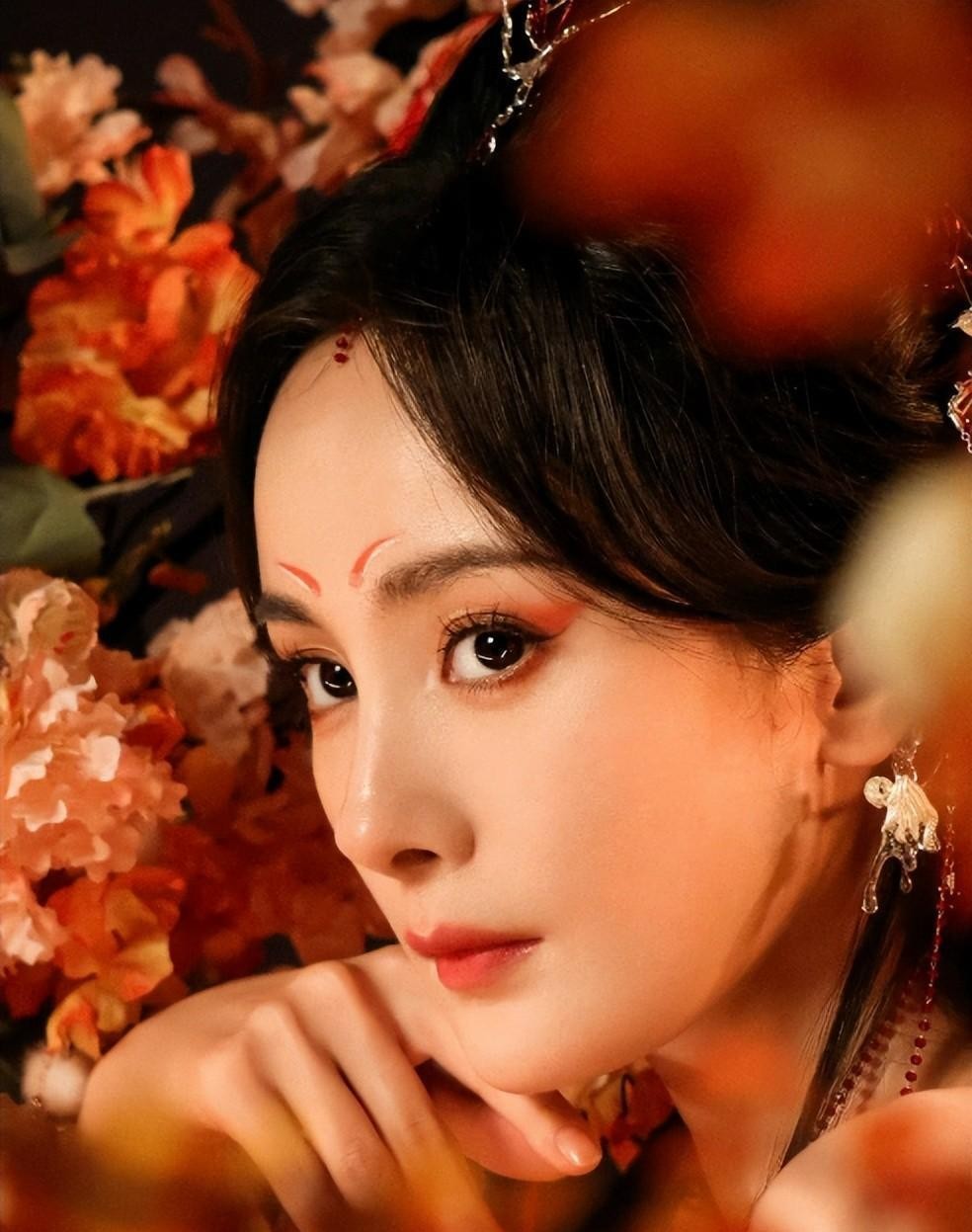 特别是在待播剧《狐妖小红娘》中,她的定妆照更突出了她那双楚楚动人的狐狸眼。一身红衣,眉间的花钿,以及眼尾的橘红色眼影,都使她看起来更加妩媚动人。她的眼神充满狡黠,具有一种勾魂的魅力,再加上她的身材,简直完美绝配。