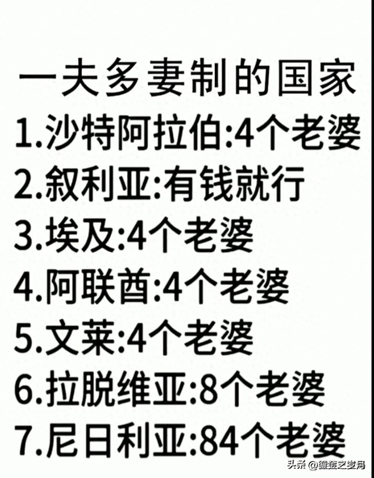沙特阿拉伯是一个伊斯兰教国家,伊斯兰教律法规定男性可以同时拥有最多4个妻子。虽然法律规定只能拥有4个妻子,但是现实中还存在一些男性拥有更多的妻子。此外,一些沙特阿拉伯富豪也会通过“财产分割”来绕过最多拥有4个妻子的限制。