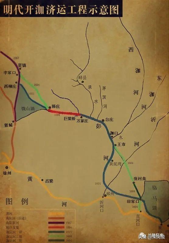 明万历二十二年(1594年),为排泄因黄河决口而导致的积水,工部尚书舒应龙又开凿了沟通南阳新河与彭河的韩庄支渠。
