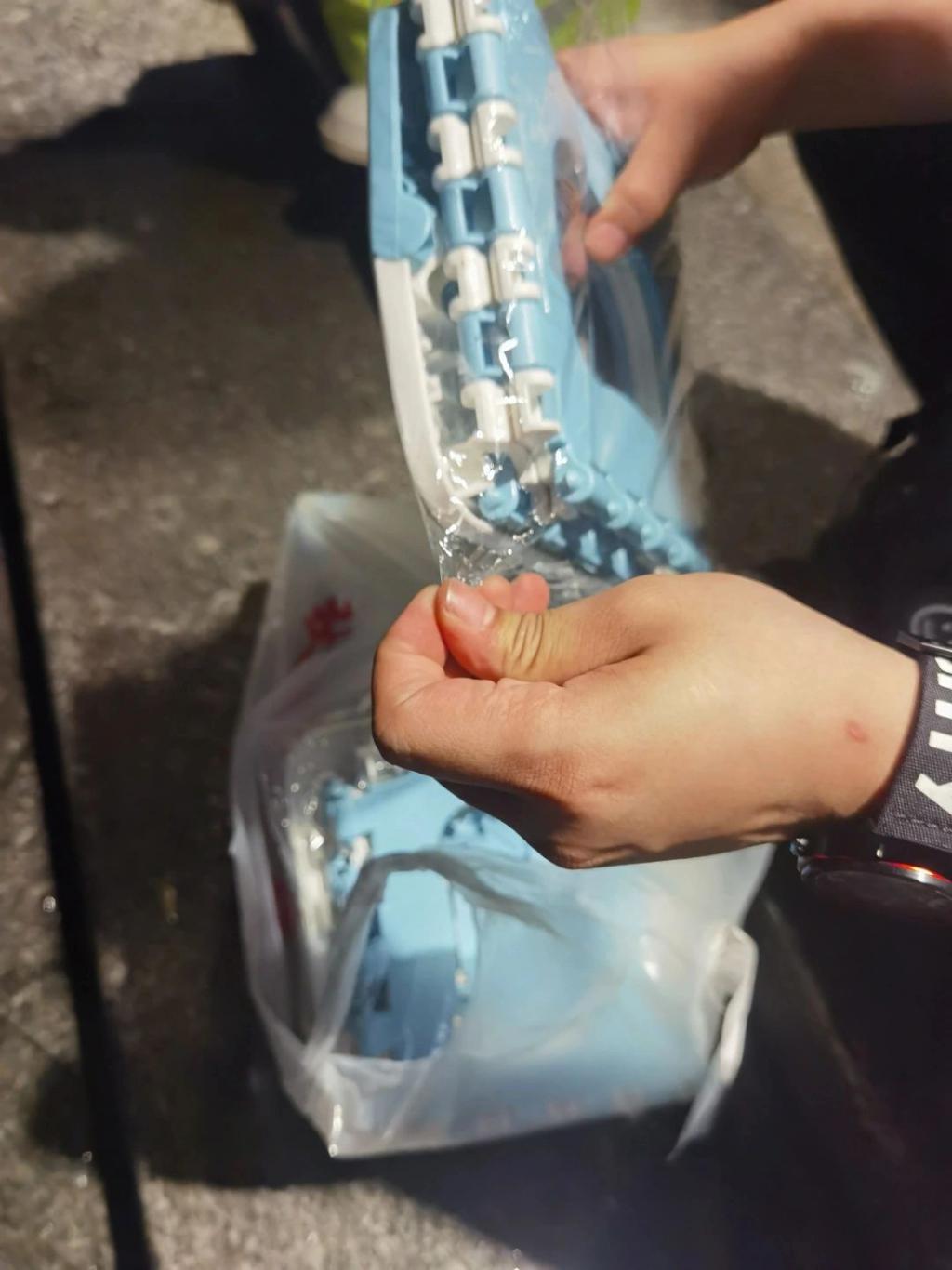 △热心市民送来的折叠小凳。图源 / 潇湘晨报