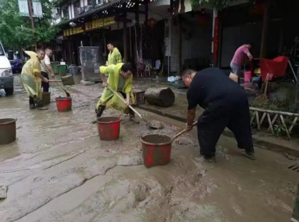 同样因为强降雨,张家界永定区尹家溪镇山洪陡发,街道上出现严重积水。6 月 22 日,该镇组织开展街道泥污清理,尽快恢复群众正常生产生活秩序。