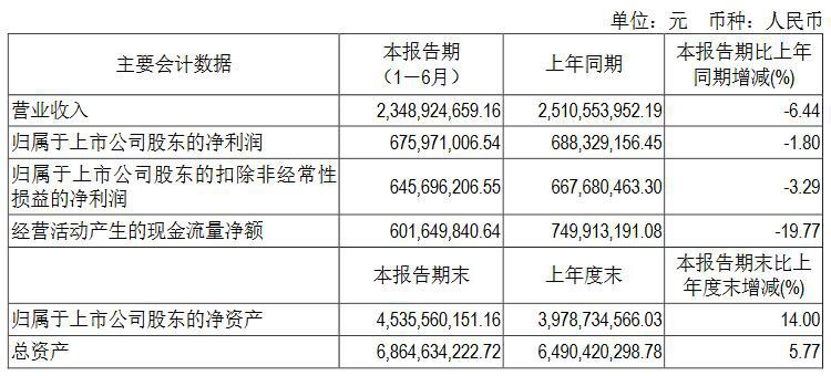 15 日晚,吉比特披露半年报,上半年营业收入约 23.49 亿元,同比下降 6.44%;归属于上市公司股东的净利润约 6.76 亿元,同比下降 1.80%。