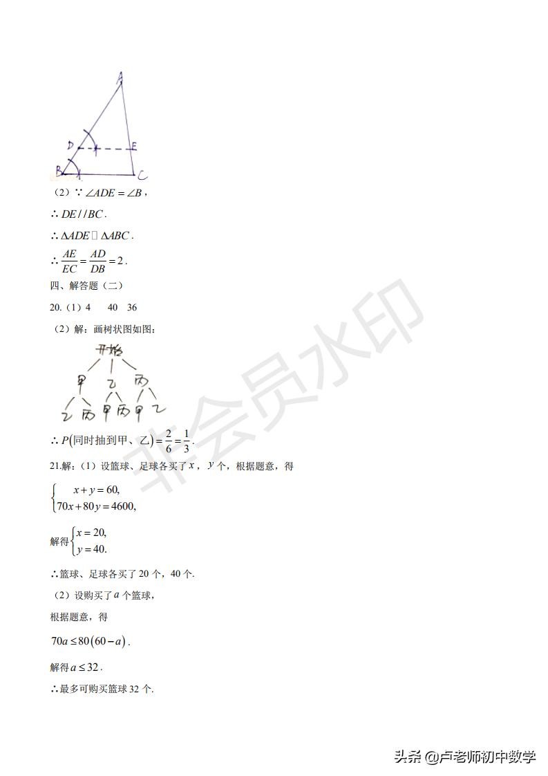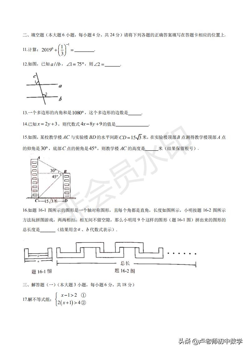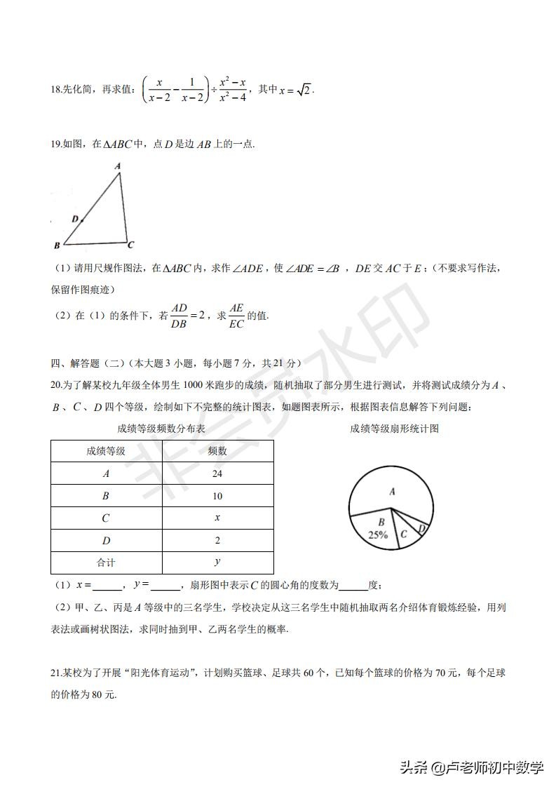2020年中考改革后的试卷与2019年中考数学试卷对比,题型以及分值变化。