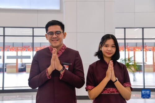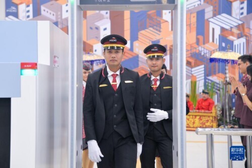 10月2日,在印度尼西亚雅加达哈利姆车站,乘务人员欢迎乘客和嘉宾。