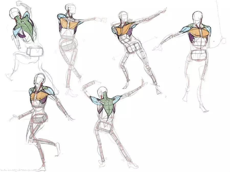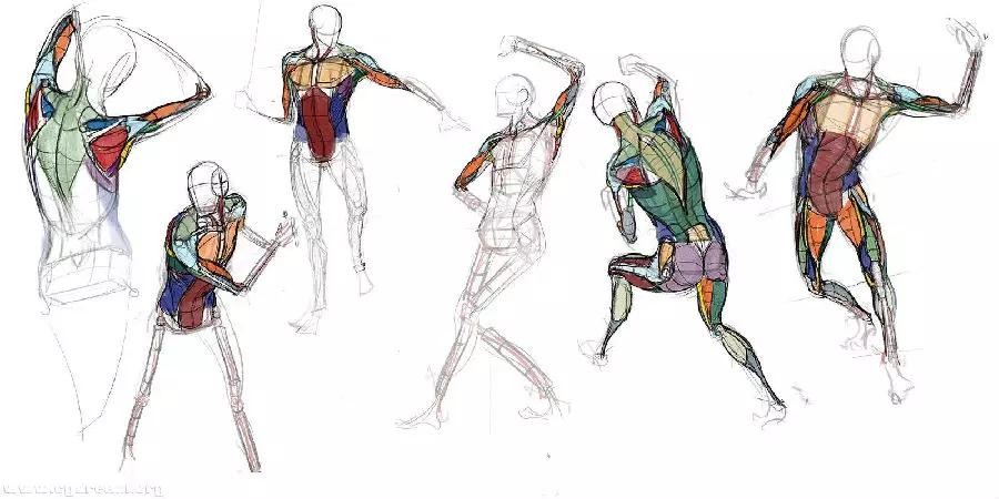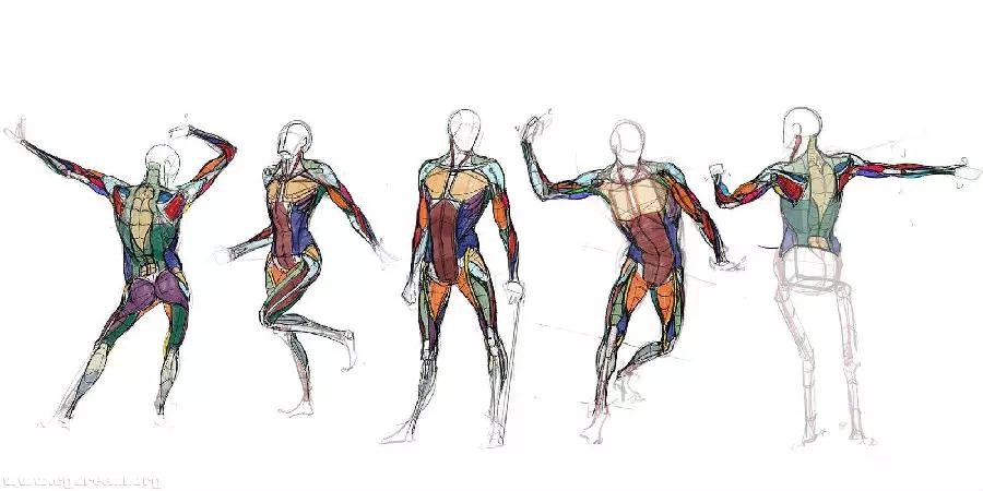 人体结构的绘画参考,对人体的理解会有很大的帮助,特别是对于结构性有很大盲区的朋友!由于男性没有女性那么明显的胸部,很容易画成平板的体型,因此,在画男性时,要想最大限度地突出男性的特征,就要把肩膀画得又宽又厚,如果再画出锁骨,人就会显得很魁梧。此外,还应注意男性关节的起伏感,手、胳膊与腿要粗壮些,手腕处要比女性的手腕部位画得要偏下(就是把手臂画长一些)。画男性的侧身像时,锁骨和肩头的线条应是连在一起的,胸部、后背不要画成直线,要表现出肌肉的起伏,从颈部到后背的线条要画得稍有曲线,这样,可以表现出男性身体的厚度。