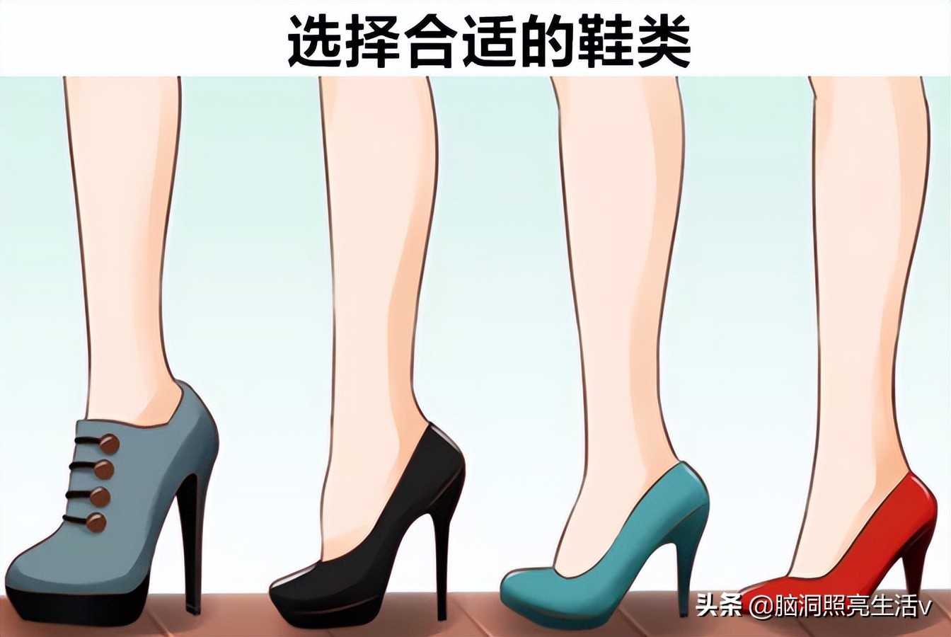 选择适合自己的高跟鞋尤为重要,因此买鞋子尽量要试穿,还要注意高跟的高度,对于青春期的女生来讲,选择中低跟的高跟鞋就可以,太高会影响正常骨骼发育,此外,有防水台的高跟鞋穿起来会舒适一些,因为它会让足弓承受的压力减轻,最后一点,就是要注意鞋底和鞋跟的质量,鞋跟的坚硬程度如何,鞋底是否柔软,这些都是很重要的。