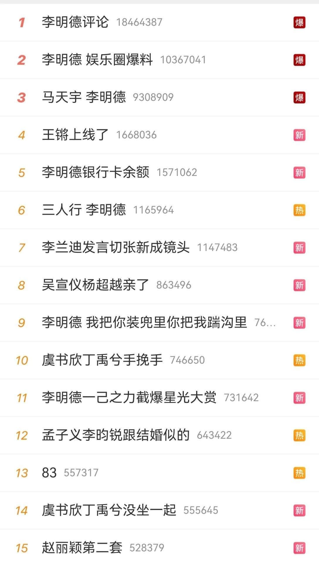 4日晚上,李明德凭一己之力霸榜热搜,热度甚至超过星光大赏。