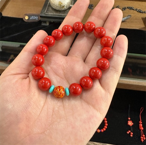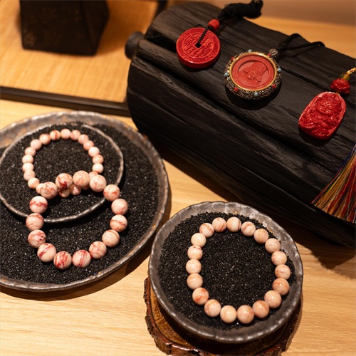 朱砂具有一定的安神、定惊的作用。佩戴朱砂能够在一定程度上缓解这种不良的精神状态,让他们的内心更加平静和安稳。
