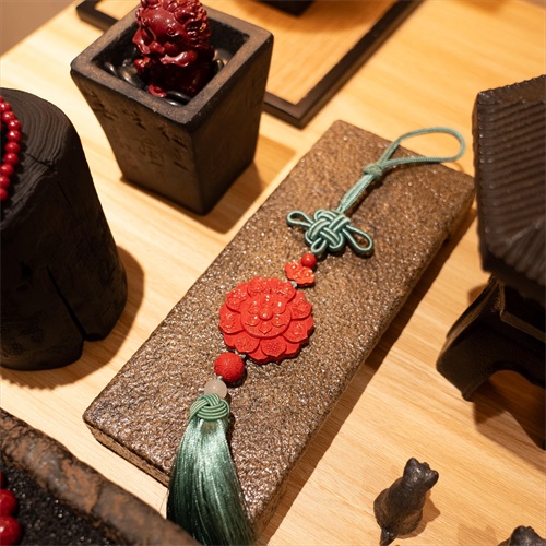 走进朱砂阁,就好像走进了一个特别精美的艺术品展览馆似的。这儿摆着各式各样的朱砂制品,有小巧玲珑的挂件,还有大气磅礴的装饰画,每一样都把朱砂的独特魅力给展现出来了。