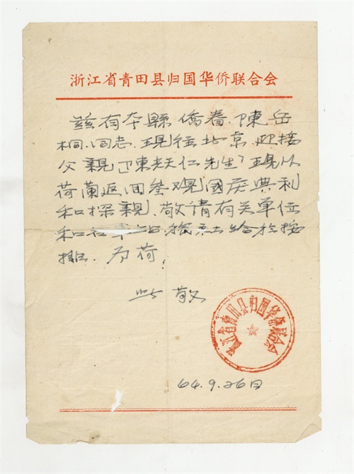 第二次拜访青田华侨陈列馆时,我又将姨娘收藏的照片拿到陈列馆扫描存档。第三次我则动员陈耀仁的外甥将书信、证件和照片近三十份史料,也拿到华侨陈列馆扫描存档。