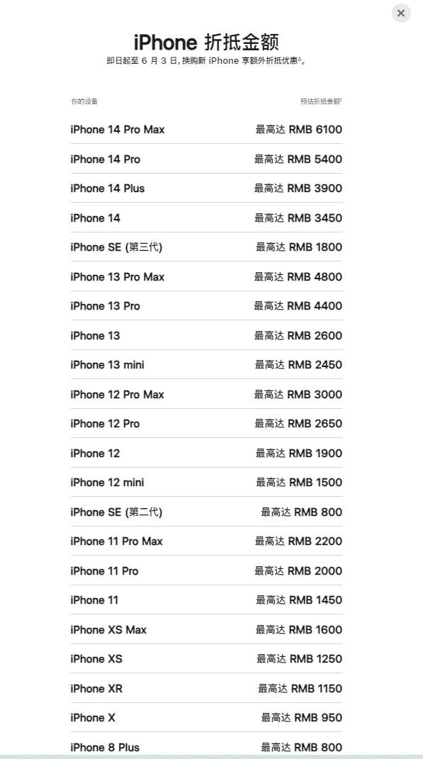 总结:如果你手头有iPhone 11或后续机型,并且打算换购新的iPhone,那么现在是个不错的时机。通过参与Apple Trade In换购计划,你可以享受到从RMB 1100至RMB 6100不等的折抵优惠。不过,具体的换购价格还需要根据你的手机型号和状况来确定,建议在换购前先到Apple官网查询详细的换购信息。