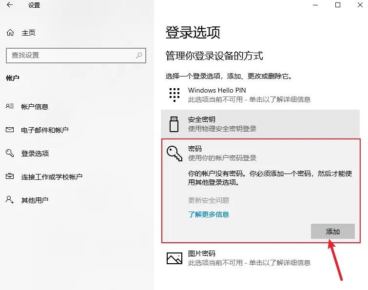第四步:接着找到【密码】选项后再点击【添加】,如下图所示: