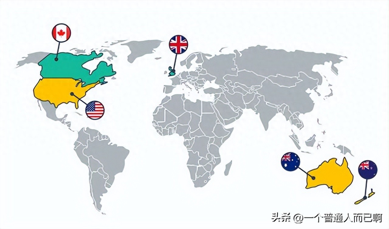 五眼联盟是由5个以盎格鲁撒克逊人为主体国家组成的情报组织联盟,这5个国家分别是:美国、英国、加拿大、澳大利亚、新西兰,其中的四个国家曾经是英国的殖民地,可谓是同种同文。