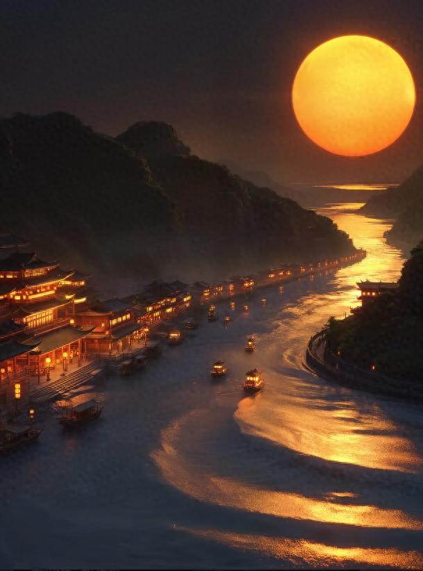 赏析:“东望拜潮水,无家在客船”,开篇便以直白而深沉的笔触,勾勒出诗人在元旦这一阖家团圆的时刻,漂泊于客船之上的孤独身影,对着潮水遥拜,传达出强烈的漂泊无依之感,奠定了全诗的情感基调。