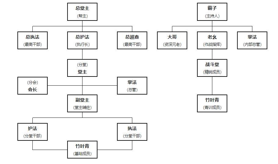 竹联帮“帮主”一词为社会泛称,在其帮内编制名称为“总堂主”。