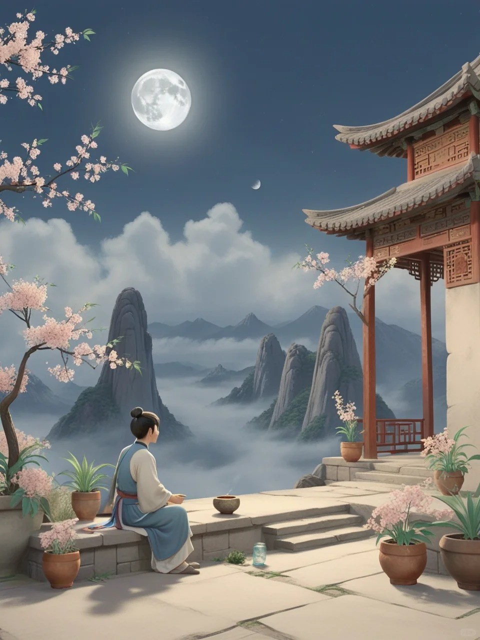 每当月圆之时,无论你我相隔千里,却能在同一轮明月下遥相思念,虽远隔千山万水,却能共感此刻的宁静与思念,给人一种既凄美又温馨的感受。