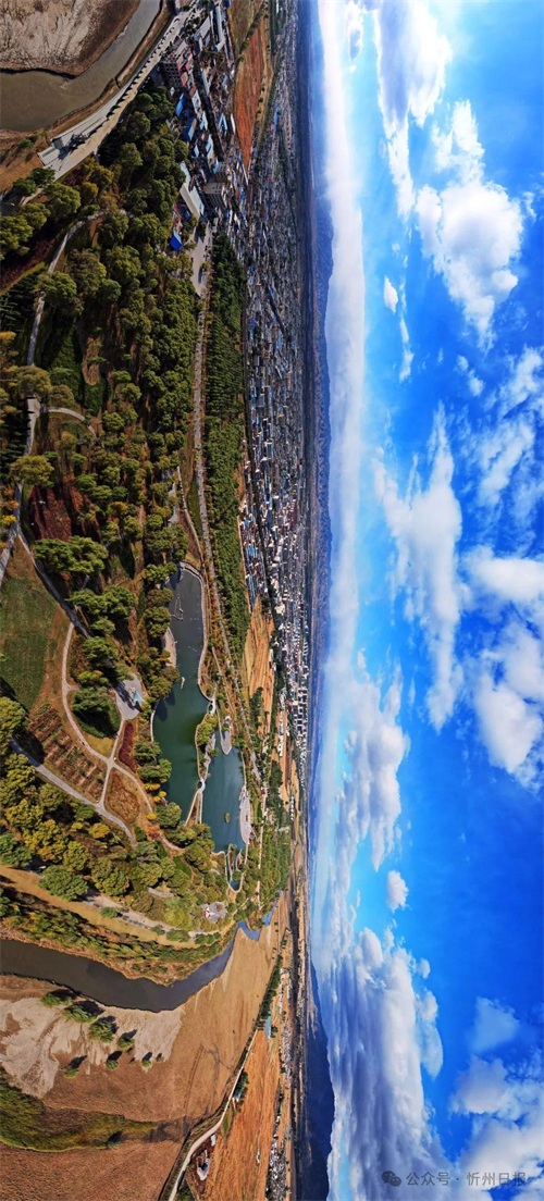 请横屏观看,繁峙滨河公园全景。摄影“瑞迪航空”