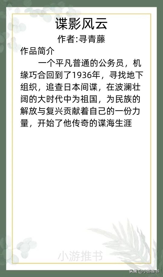 10.《谍影风云》 作者:寻青藤 //字数:371w