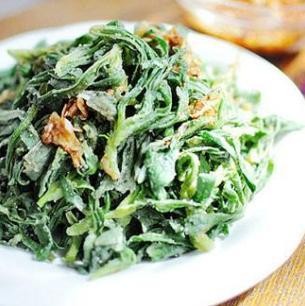 辅料:面条菜、低筋面粉、蒜、芝麻酱、水 调料:玉米油、陈醋、生抽、食盐