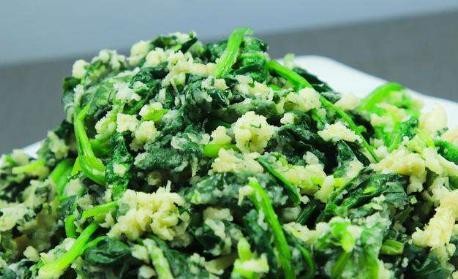 原料:菠菜、玉米面150g调料:盐1小勺、胡椒粉1小勺、少许香油。