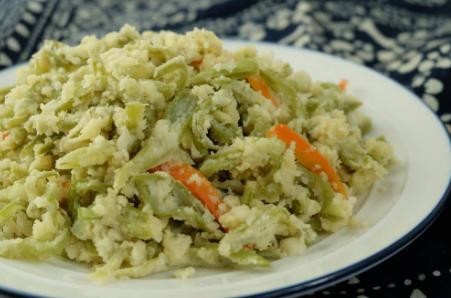 4、锅内烧开水,上锅蒸15分钟,取出,晾凉,打散;