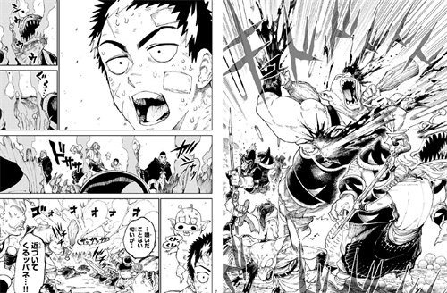 one老师虽然画工不行,但是他的脑洞是真大,经典的作品《一拳超人》《灵能百分百》都被制作成动漫,制作成动漫之后也是很火。然后one老师推出了最新的作品《バーサス》,因为没有汉化,所以还不知道这个名字怎么翻译。第一话的内容就很劲爆,反转真的太多了,不愧是one老师。