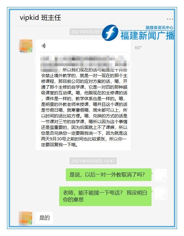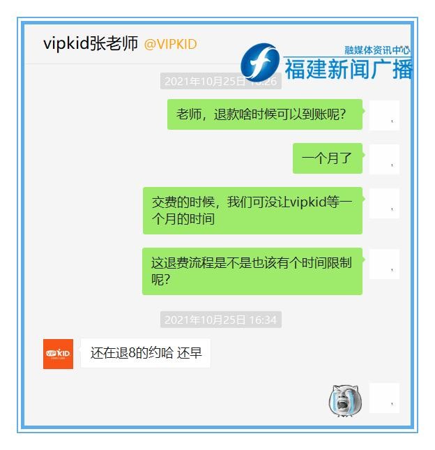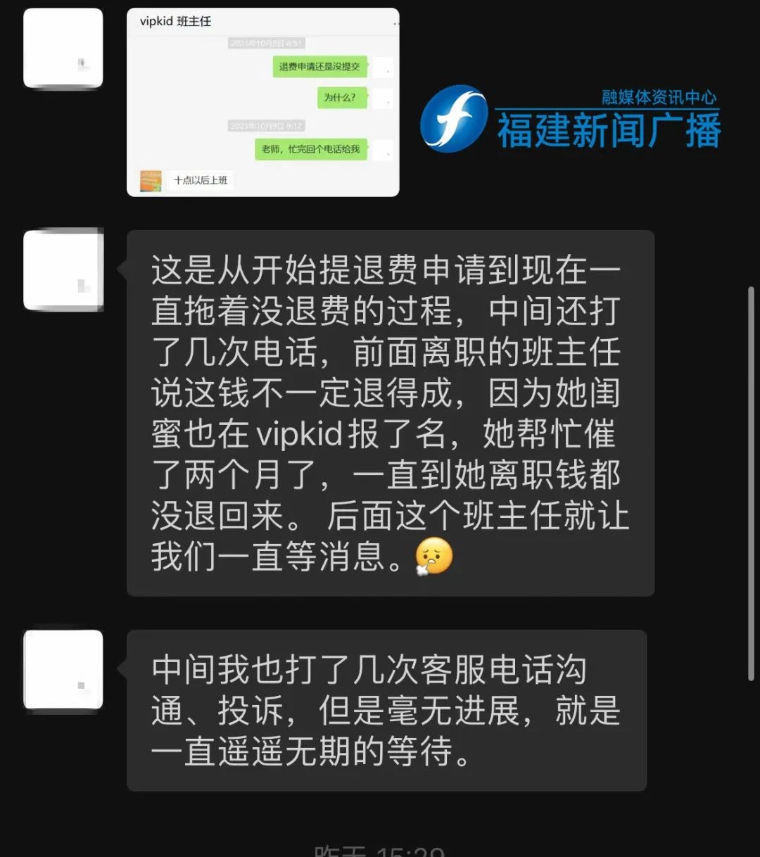 福州的徐女士反映,“vip·kid”在线青少儿英语培训机构疑似“爆雷”,她家孩子在这个机构上了4年多的一对一外教口语课,前不久突然停课,剩下的课时费,催了一个多月还没退还。