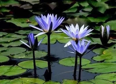 蓝睡莲,就是现实的花,错落有致的碧绿叶片,星星点点的浅蓝花瓣,明亮闪烁的金黄花蕊,就是如诗如画的蓝睡莲的精妙与绝伦,从尼罗河绽放到了别的许多地方,一直延续到今天,就有了一种难以言说的美丽,拥有着古老、独特、神秘的文化信息,而且众说纷纭。其实,它们的绽放与凋零无关人情世俗,亦无关人心悲喜,蓝睡莲兀自开放,蓝睡莲兀自凋零,平静、优雅、清淡,也只是日出而开,日落闭合,淡绿莲叶,浅蓝花朵,如此这般,年复一年,日复一日,安安静静,幽幽淡淡,迷迷濛濛。