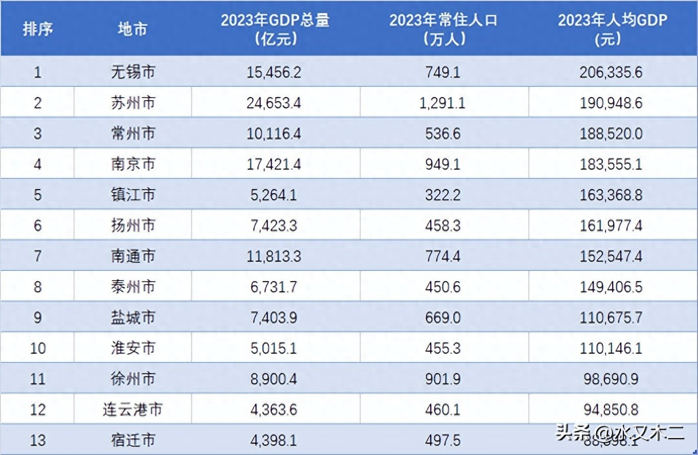 无锡胜苏州登顶,南京未入前三!江苏各地2023年人均GDP排行出炉