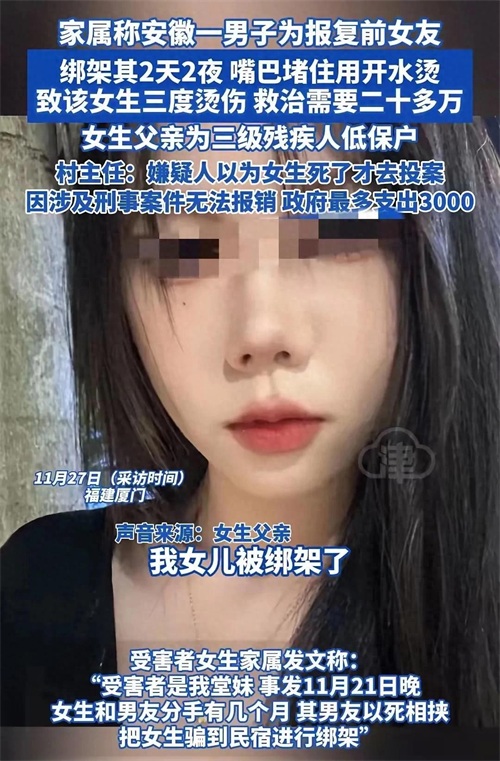 近日,XX市发生了一桩骇人听闻的事件:一名年仅20岁的女孩小丽(化名),竟被她的前男友张某绑架并残忍虐待了整整两天两夜。这一事件迅速引起了社会的广泛关注,张某在意识到事态的严重性后,选择了向警方投案自首,而小丽的家人也对此事表达了他们的极度愤慨与无助
