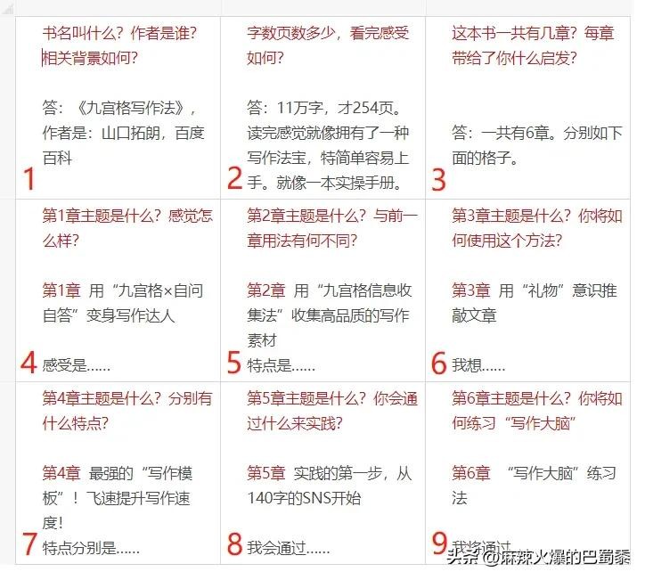 网络写作九宫格
