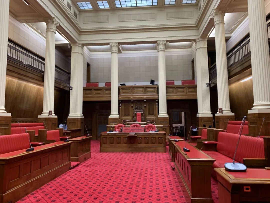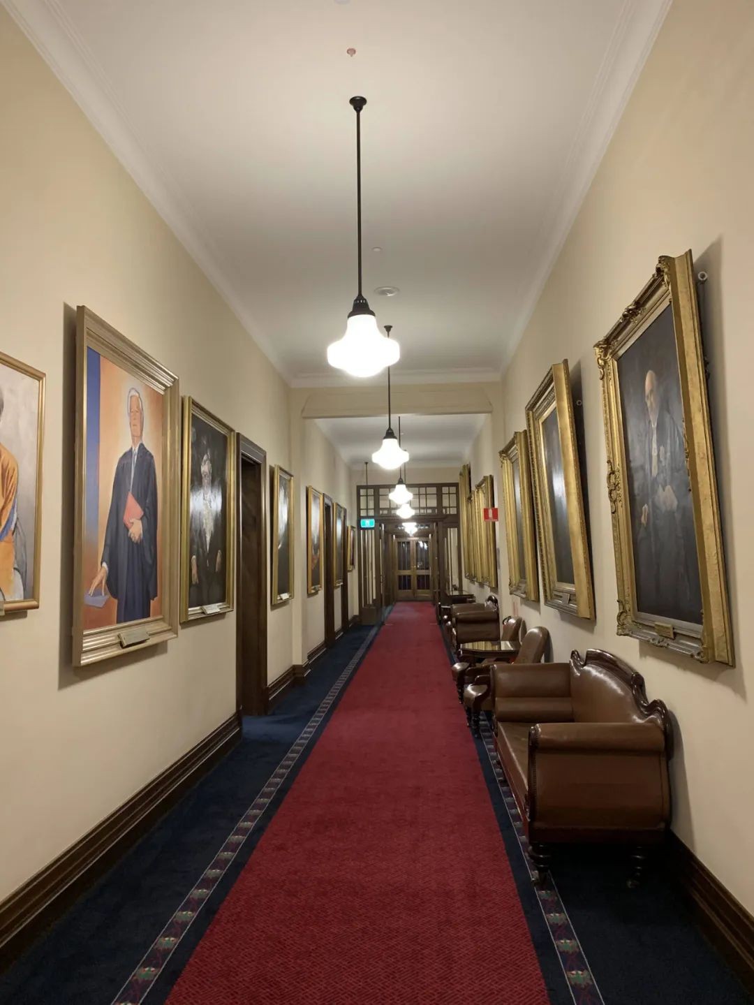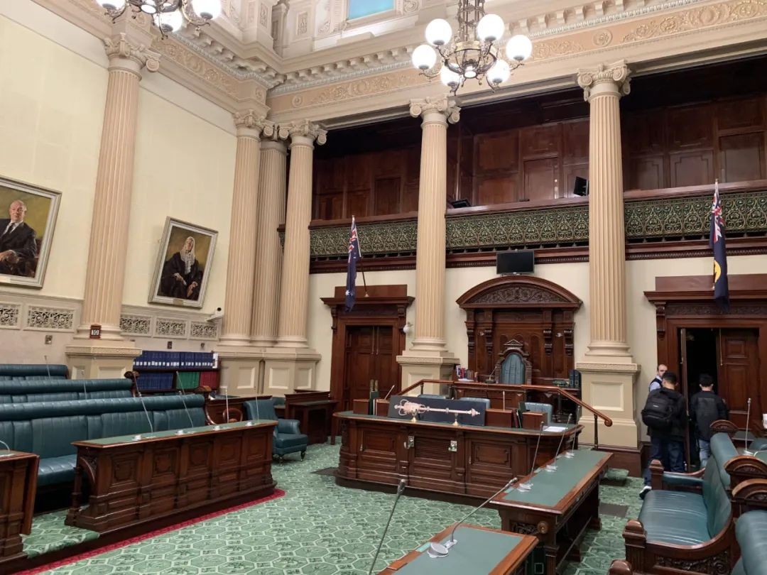 至此,我已经去过澳大利亚所有的州和领地的议会,南澳议会上议院是最朴素的。毫无“皇家”风范,装饰朴素,除了科林斯式立柱外,让人感受不到多少王室的威严。为了省电,顶棚使用的还是适合采光的透明玻璃。这从侧面反映了阿德莱德与同时代的其他首府城市相比,经济发展相当滞后。因为作为一个新兴殖民地,议会的建设和欧洲的教堂情况类似,都是极度依靠当地的财政和社会支持。