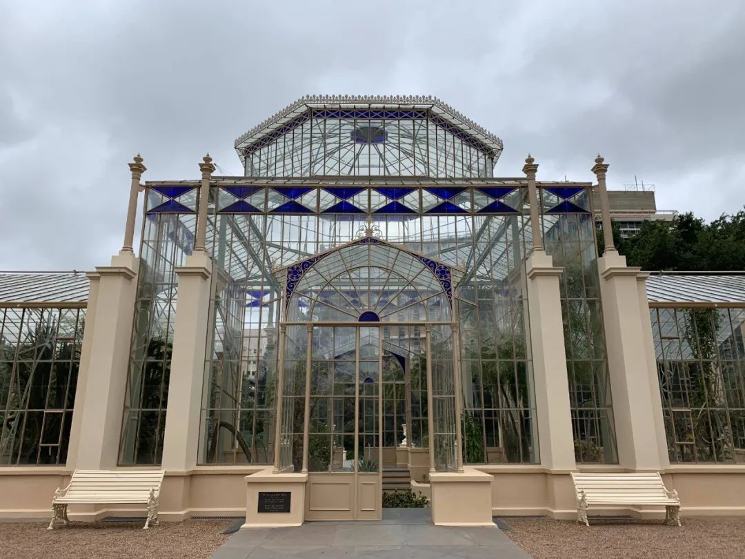 植物园内最著名的建筑是一个维多利亚时代建筑风格的温室,名叫棕榈屋 (The Palm House)。 这个温室于1875年从德国进口过来,1877年对外开放并于1995年和2018年两次修复,是土澳全国第二古老的温室。值得一提的是,这个温室是世界上现存不多的由德国建筑师设计的建筑。因为绝大多数的由德国设计师设计的同时代建筑都在二战中被炸完了。