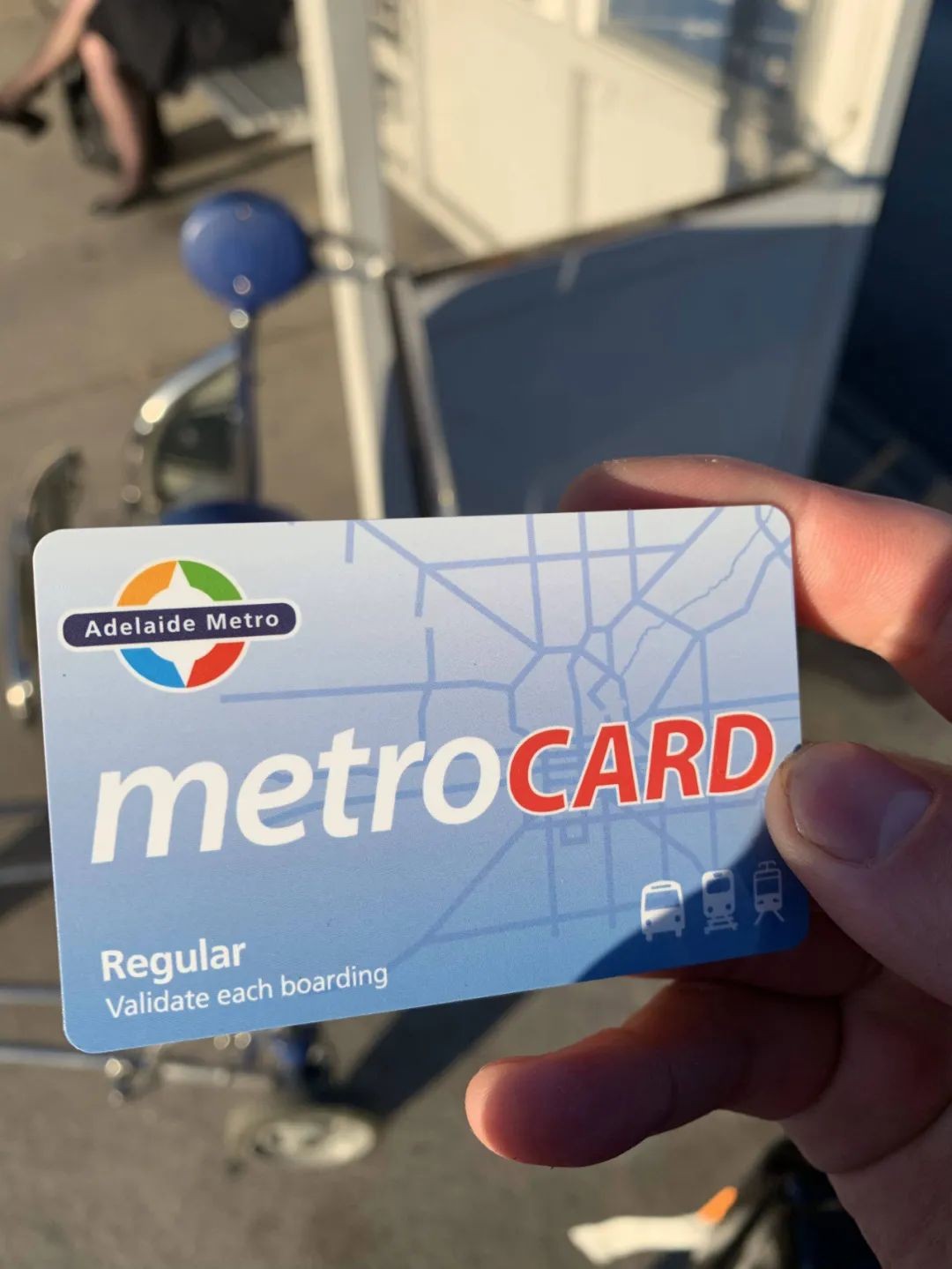 如果你选择通过公共交通方式游览阿德莱德,那一定要在机场的公交站买一张交通卡。自动售卡/充值机就位于机场的公交站,卡费5澳元,学生卡和优惠卡卡费3.5澳元。又与全国其他城市不同的是,阿德莱德的交通费采取单次刷卡制,即在阿德莱德大都会区内乘坐公共交通,不论你去多远或是去哪里,会扣一次固定费用。这个费用分高峰期 (Peak trips,周一至周五9:01之前,15:00之后,以及周六全天) 和非高峰期 (Interpeak trips,周一至周五9:01到15:00,以及周日与公共假日全天)。虽然公交前后都有刷卡器,但上车只需刷卡一次,下车无需刷卡。因此刚到阿德莱德的时候,我还纳闷为什么所有人下车都不刷卡。
