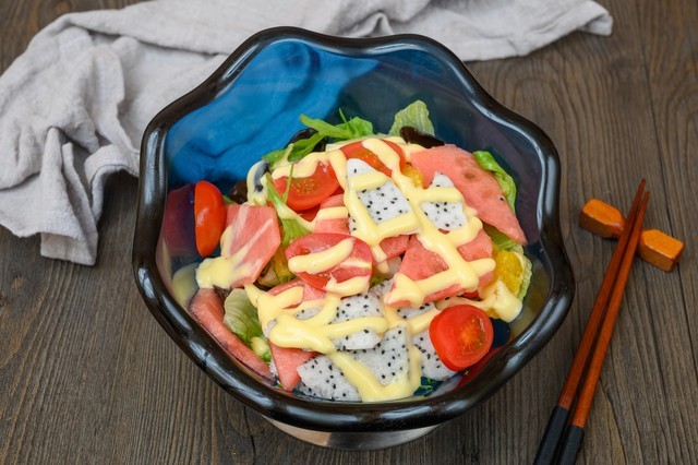 当然,你也可以加入一些时令水果,比如夏天的西瓜、冬天的柚子,不同季节的水果各有风味,选择让你眼花缭乱的各种组合,搭配出最符合自己口味的沙拉。