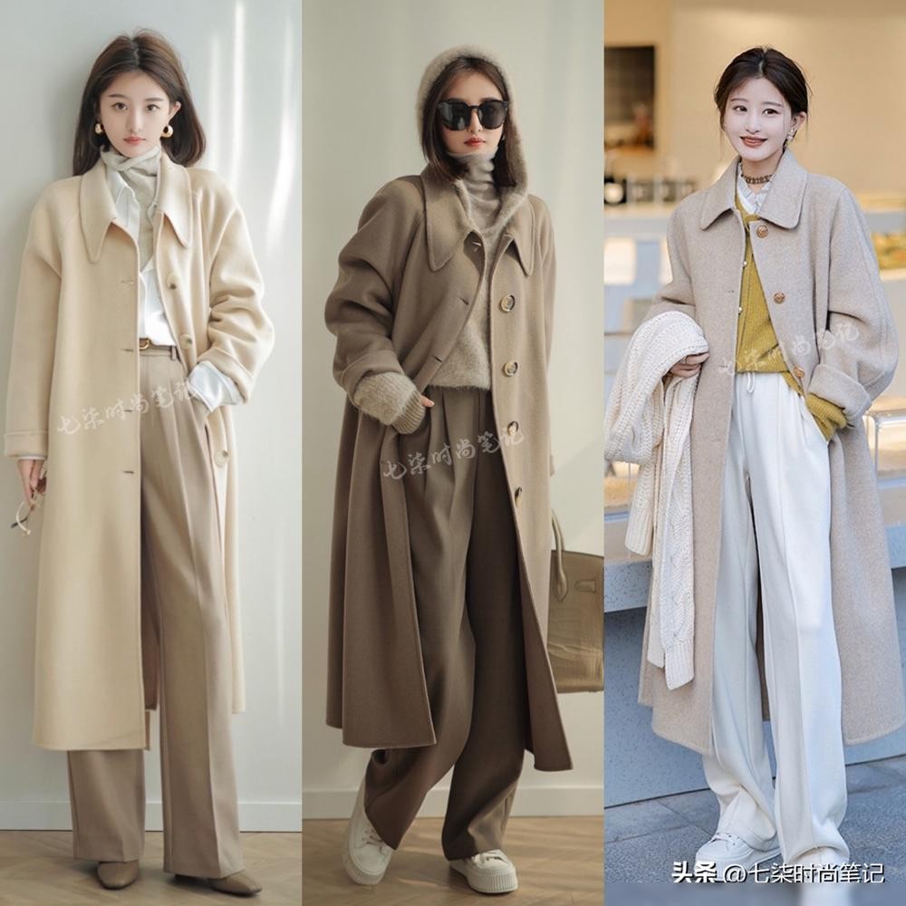 高个子女生时尚之选:大衣+阔腿裤