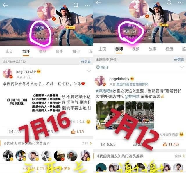从网友的截图中可以看到,Baby7月16日关注的人数是754,而在7月12日关注的人数依然是754,也就是说baby根本就没有取消一人,是“有心人”故意放出的假消息混淆网友视线,同时粉丝也曝出baby之所以感慨是因为助理的原因。