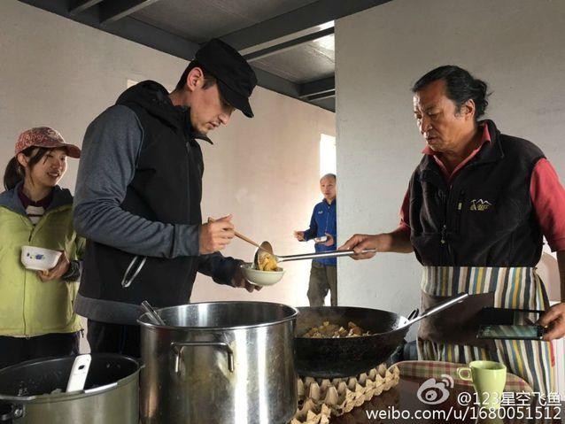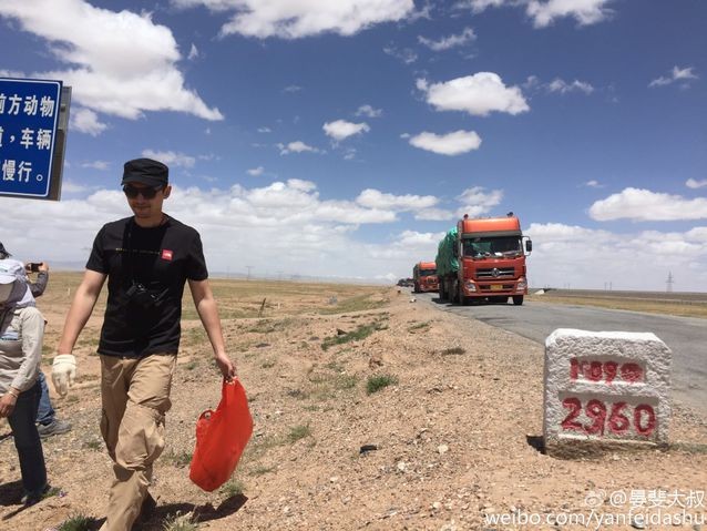 正在青海当志愿者加垃圾的胡歌。