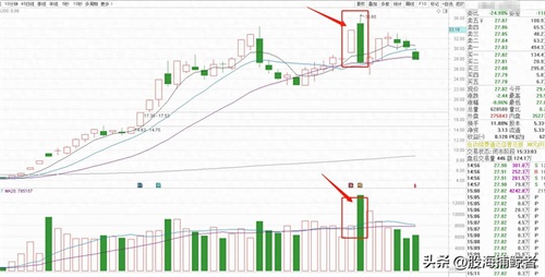 如上图所示,某个股的日线级别走势,时间是2024年4月至6月。图中红色方框所示就是乌云盖顶K线,并且成交量同步放大,空头力量在高位集中释放,后面该股连续3周处于下跌中。