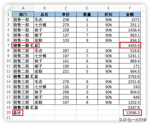 这种展现形式也非常清晰明了,不仅按部门进行了汇总,还在下方显示了金额的总计。