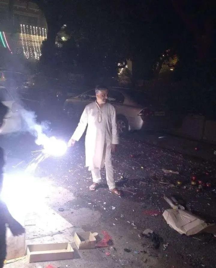排灯节燃放烟花的民众