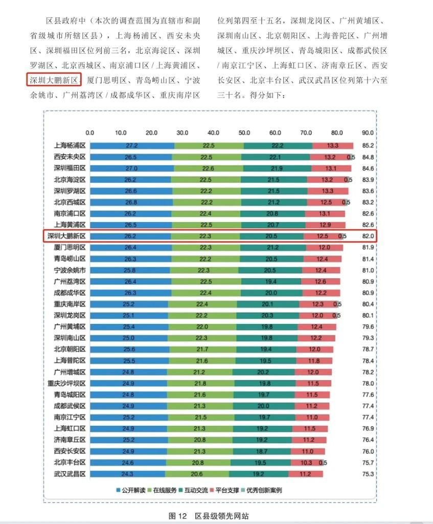 大鹏新区政府在线跻身全国区县级政府门户网站前十