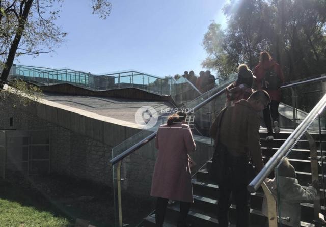 进入园区向南走,一个非常有设计感的长梯映入眼帘,走上长梯会俯览到园区内部分景观。