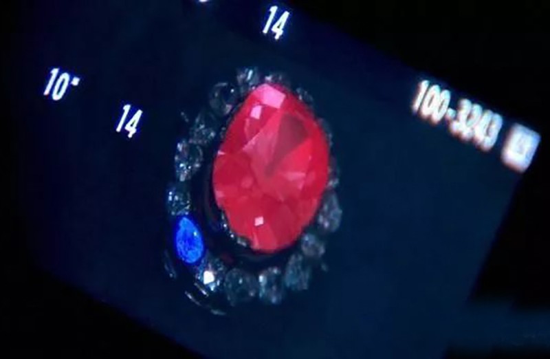 该钻石独特之处是,用紫外线照射它,会淡淡泛光。可是,移走紫外光源移后,它就会发出红色磷光。而旁边一颗细小钻石,当照射后,会发出蓝白色磷光。