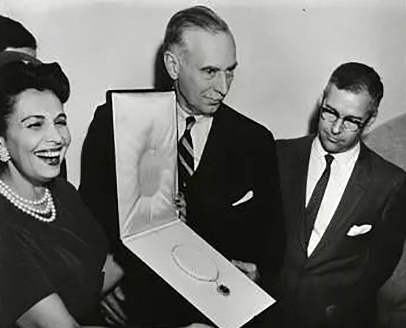 芭芭拉·赫顿。1933年摄于纽约大都会歌剧院,颈上正佩戴的正是此翡翠珠。